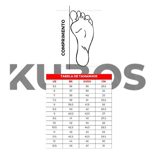 A língua dobrável (fold-over) proporciona uma superfície de contato mais uniforme e apoio firme ao ajuste do calçado, o que pode contribuir para maior segurança no momento do chute.